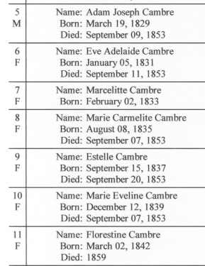 in a 7-day period in 1828, one at the age of 2 years and four months and